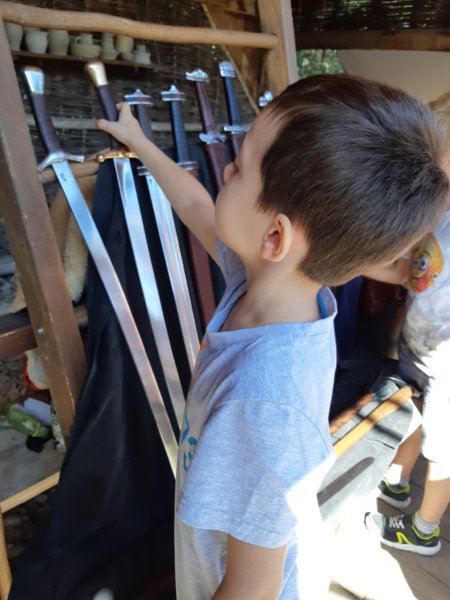 De persze az egyik legjobb elfoglaltság az volt, hogy egymást kergették a fiúk a várban és kint a mezőn is és jókat játszottak együtt. El is határoztuk, hogy ha jövőre megyünk, viszünk magunkkal több ennivalót (mert sokáig maradtunk, ami volt nálunk kevés volt, a büfé pedig nem a legjobb), répát, almát a lónak és fakardokat – ha még kaphatóak lesznek rá a fiúk 🙂 – ami utólag rájöttünk kifejezetten passzolt volna a repertoárba. Persze jóval tovább maradtunk, mint szerettük volna, ráadásul kifelé menet is van egy büfé, ott megálltunk jégkrémezni, utána a fiúk leragadtak az autó felé menet útba eső repülőnél és a kis játszótérnél,