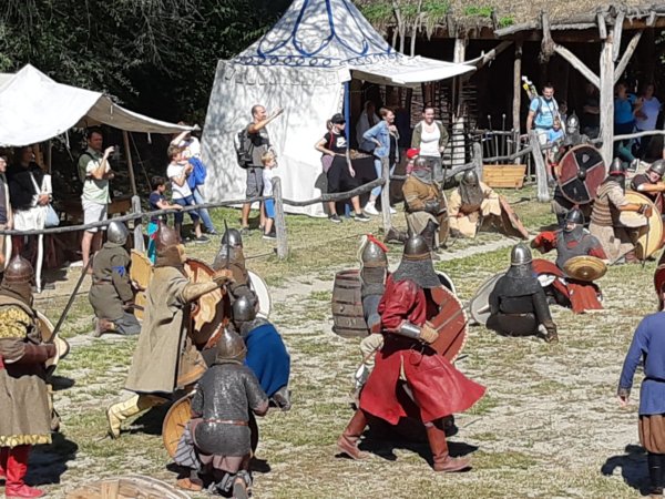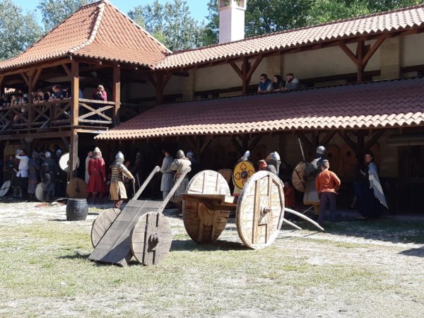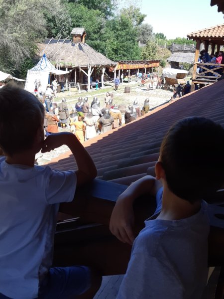 Mondhatjuk talán, hogy kicsit visszatérő program ez nálunk, mert két éve már jártunk ott a közeli Szigethalmon, ahol működik ez a jó kis középkori múzeumfalu, és szeptember közepe táján minden évben korismereti találkozót szerveznek. Nagyon szuper volt minden már két évvel ezelőtt is, amikor Tomával ketten jártunk ott, ezért most már másokat is belelkesítettem 🙂 , és így két osztálytárssal mentünk, ami persze a lehető legjobb volt a srácoknak, meg nekünk sem utolsó, mert legalább jól elvoltunk mi is közben 🙂 . Toma Andor barátjáék családostul, apával, anyával, tesóval jöttek, Vincéék viszont “csak” anyukával, így ők velünk jöttek autóval. Hát azt elmondhatom, hogy a srácok már az első pillanattól nagyon élveztek mindent, egyrészt mert vissza csöppentünk a középkorba, másrészt meg minden szuper volt így bandázva, a programokról nem is beszélve 🙂 . Az egész terület nagyon élménydús, már befelé sétálva is középkori hangulat fogadott mindenhol: