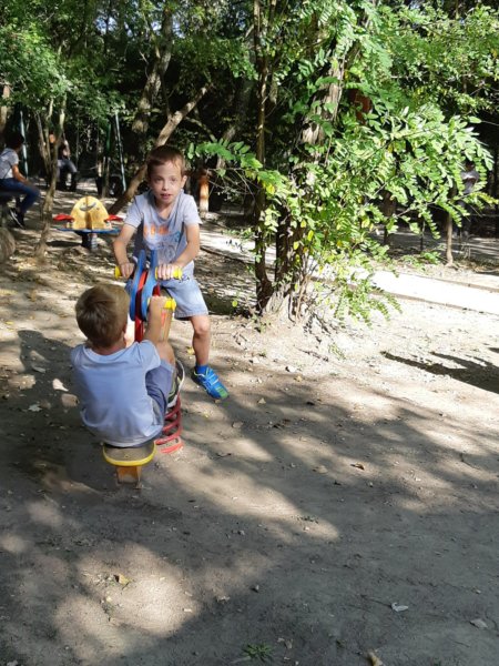 a szomszédos Vadasparktól egy kerítés választja el a Parkot, így a fiúk nagyon megörültek a vaddisznóknak, amikor meglátták őket 🙂 , egy csacsit pedig meg is kellett simogatni 🙂 :