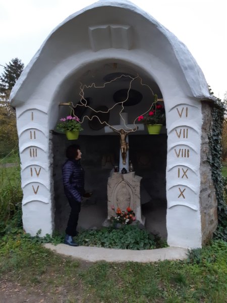 Szóval ebéd előtt felmentünk a kápolnához, ami persze zárva volt, mert nem mindig látogatható. De így is nagyon szép és számítva erre, bóklásztunk picit az erdős-dombos részen, ugyanis a terület a kék túra útvonala és van ott egy Mária kegyhely is 🙂 …