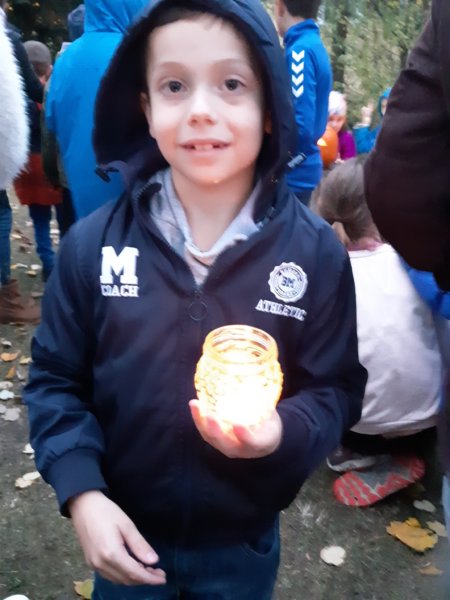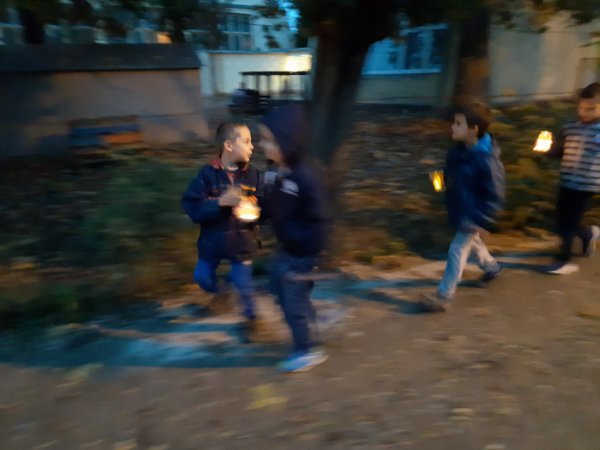 Jó sokáig elvoltunk a nézelődéssel, aztán meggyújtottuk a lámpásokat, összegyűltek újból a gyerekek, aztán elindultunk együtt, gyerekek és felnőttek bejárni az iskola környékét. A fiúk nagyon élvezték, hogy együtt vonulhatnak, egy idő után főleg a barátokkal ment a vonulás és nagyon jól érezte magát mindenki 🙂 !