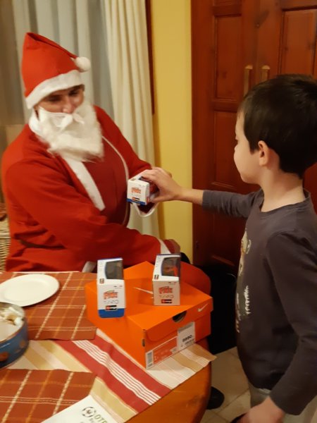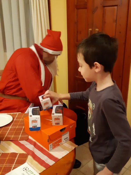 Aztán nagyon megszerette Szent Miklós püspököt, az iskolában olvastak róla és nagyon megragadta a fantáziáját és nem értette, hogy miért nem ő tulajdonképpen a Mikulás, be kellett érnie csak a legendájával 🙂 … Központi kérdés volt idén az is, hogy az ő Mikulása, aki hozzá jár, miért olyan soványka? Hiszen minden rendes Mikuláson van rendesen felesleg, és ő nem szereti, hogy aki hozzá jár, az olyan vékonyka 🙂 … Ezt megemlítettük a kedves hozzánk járó Télapónak, tényleg pusztán csak viccből, semmi szándékosság nem volt a dologban. És ez a drága Mikulás volt olyan jó fej, hogy amire jött, pocakot eresztett, szép kis “párnás” hasa kerekedett 🙂 ! Toma is nagyon boldog lett, sőt, még fel is hoztuk a Télapónak és el is beszélgettünk vele erről, hogy tavaly óta csak felszedett pár kilót, mert hát ugye mindenhol eszeget egy kis kekszet, mézest, mikor és hol mit 🙂 . De persze a legnagyobb élmény maga a találkozás öröme volt, hogy ismét jól elbeszélgetett vele az illetékes, már-már jó ismerősként üdvözlik egymást. És a hab a tortán mindig az ajándékozás, most rengeteg autóval, mert ezt kért a Mikulástól Toma, úgyhogy újabbakkal gyarapodott a gyűjteménye és még a focira is kapott benti tornacipőt és nagyon jó tréningruhákat, a bátyjával együtt, aminek mindketten nagyon örültek 🙂 !