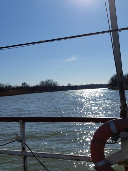 Most, hogy a címet leírtam jöttem rá, hogy valahogy minden évben február tájékán megyünk át először a Molnár-szigetre Tomával, amolyan tudattalan tavaszi szezonnyitás ez részünkről úgy tűnik 🙂 . Most éppen Toma betegnapja volt ez az apropó. Az is igaz, hogy Toma már előző nap nagyon mondogatta, hogy milyen szép idő van és ő annyira szeretne átmenni a szigetre… Másnap, mivel délelőtt rendel a doktornéni – akihez be sem jutottunk és sokkal hamarabb végeztünk, mint gondoltuk – meg is valósítottuk, készültünk is rá, enni-innivalót és focilabdát is vittünk, mindezek mellett ráadásként gyönyörű tavaszias, meleg, napsütéses időnk lett aznap. Toma különösen szeretett volna autóval átkompozni, mert mint mondta, azzal szinte soha nem megyünk – valóban, a kompig kocsizunk, utána gyalogosan megyünk át 🙂 – szóval most ez is megtörtént. Ennek köszönhetően sokkal több helyet bejártunk ott a szigeten, mivel nem a saját lábunkkal mentünk 🙂 , de azért persze külön sétálgattunk többször is. Ezt az első két képet Toma fotózta, szerintem nagyon szépek, ügyes! Az első kompos a kocsiból, a második már gyalogosan készült 🙂 :