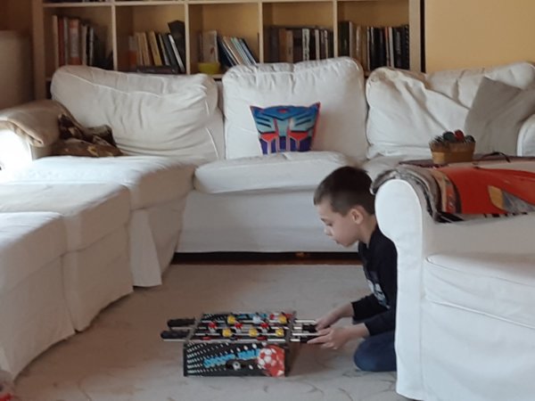 A csütörtököt nem szerettük, rengeteg sok feladatot kapott Toma is, Máténak is rengeteg dolga volt, a Családfő meg csak szimplán dolgozott egész végig. Én keveset jártam kint aznap, pedig csodaszép idő volt, készültem is rá, de vagy főztem vagy tanultunk Tomával vagy éppen pakolgattam ki a csoportba a ránk zúduló sok mindent. Tomáék azért kimentek focizni Mátéval a kertbe többször is, meg csak úgy elvoltak ott kint, hol együtt, hol külön. Délután aztán elegem lett és leültem mini csocsózni Tomával, nagy sikerélményem lett, mert én aki általában veszítek a társasokban itt szárnyaltam és többször elsöprő győzelmet arattam – magam sem hittem, hogy pont csocsóban 🙂 – Tomára meg nem hatott jól ez az egész, állandóan visszavágót akart, nem értette mi ütött az anyjába 🙂 … Délután Toma edzésnapot tartott, már nagyon hiányzott neki a futás, ezért elmentünk a Duna-partra futni egyet, illetve én bringával kísértem, ő futott. Most már többen voltak kint, de találkozni egy-két emberrel találkoztunk csak, de nekik is csak intettünk, a parton viszont elég sok horgász volt, de ők szerencsére tisztes távolságban voltak. Nagyon előrelátó voltam, mert Toma ugye jó futó, de úgy kb. 1200 métert mentünk oda-vissza itt a partunkon és nem tudtam hogyan bírja majd ezt a távot, mennyire fut gyorsan. Még az is megfordult a fejemben, hogy én is futhatnék vele (haha), na most már ez nem fog bennem felmerülni soha, ugyanis rendesen tekertem mellette, ő meg szaladt, a fáradságnak a nyoma sem látszott rajta, ha vele futottam volna, a sarkon kidőltem volna a kavicsra 🙂 …