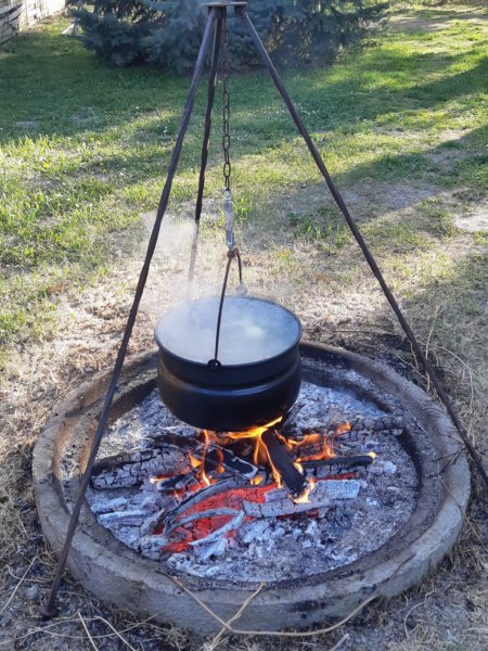 Szombaton aztán nagytakarítottam, közben kint a kertben a Családfő felállította a bográcsot és egy kis csülköt, tarját főztünk benne.