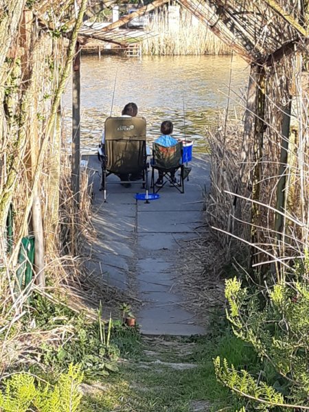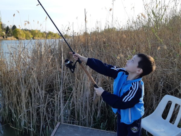 Aztán délután kiment Toma a Családfővel pecázni, Máté bent maradt, mert Benivel valami játékban voltak benne és mellékállásban segített nekem nyulat játszani a kertben 🙂 … Toma reggel nagyon édes volt, még két sárgarépát is kirakott a nyuszinak, arról sem szabadott megfeledkezni, megette a nyuszi, csak mondom 🙂 … Utána kimentem hozzájuk a stégre, bár én csak a termoszbögrés kávémat kortyolgattam mellettük a széken 🙂 . Toma a bedobást gyakorolta, halat alig fogtak, de nagyon élveztük az egészet, csend volt, ott a stégen és még a környéken sem volt senki rajtunk kívül, bár a part nálunk igencsak sűrűn volt horgászokkal, azért az itt felbecsülhetetlen, hogy mindig vannak olyan helyek szárazon és vízen, ahol senkit sem találni…