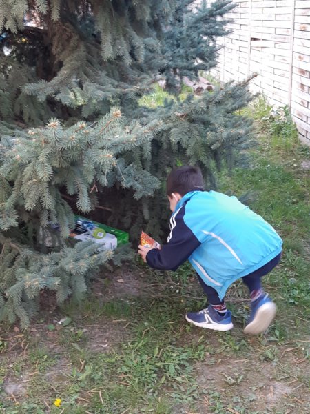 Hazaérve nagy volt a boldogság, tele volt a kert a csokitojásokkal, nyuszikkal és ajándékokkal 🙂 , bár Mátéét nekünk kellett összeszedni, egész pontosan Tomának, akit megbízott eme fontos feladattal és aki örömmel felkutatott mindent 🙂 !