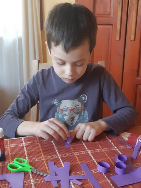 Anyák napja alkalmából nagyon aranyosak voltak a fiúk, két szép kis rózsát kaptam, amit elhatároztam kiültetek a teraszra. Toma pedig készített papír jácintot, gyönyörű lett, rajzból ötletként küldött át Szilvi néni egy oldalt, amiről mi is szoktunk csinálni dolgokat, és miután megnézte a videóját, rájött, hogy meg tudja csinálni. Néha azért, amikor megakadt besegítettem 🙂 , de nagyon ügyes és megható volt, ahogy vágta, hajtogatta, ragasztotta, készítette…