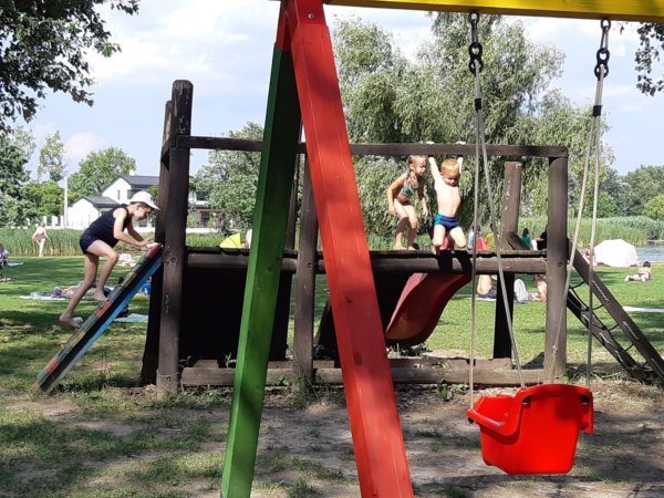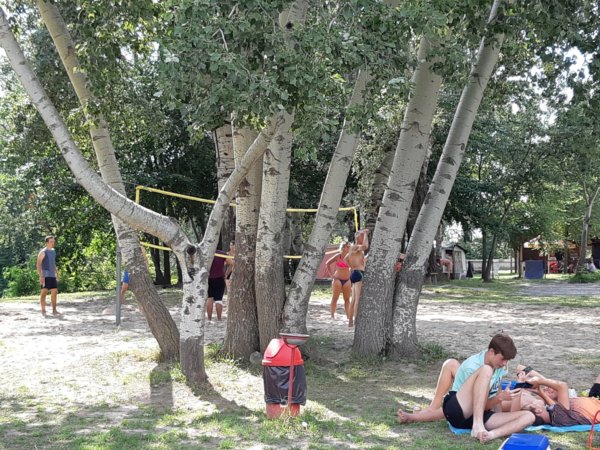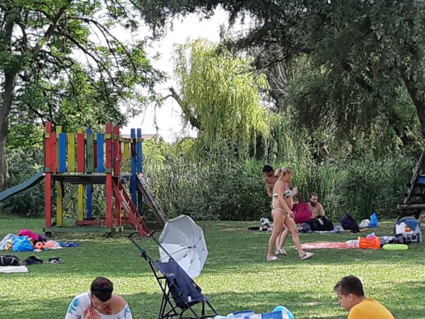 Ami nekünk nagyon vonzó volt Tomával, hogy dunai strandon eddig még nem voltunk, én talán gyerekkoromban strandoltam, ha jól emlékszem Bajánál, de itt a környéken még sehol nem fürödtünk. Pedig élvezetes, rajtunk kívül is sokan lubickoltak ott, de nem volt tömeg, pedig azt hittem lesz 🙂 , de egy kánikulai hétköznapon sem voltak rengetegen. A víz picit hideg volt azért, gondolom köszönhetően az eddigi monszunos időnek, de mi élveztük, többször fürödtünk persze 🙂 . Van ott kajak, sup kölcsönzés, strandröplabda pálya, homokos rész focizásra és egy jó nagy játszótér is, amit még egyes nagyok is kipróbáltak, pedig már nem rajonganak az ilyen helyekért 🙂 … Ami viszont Tomának nagyon bejött, az az ebéd volt 🙂 , nem gondoltam volna, de tényleg nagyon finom volt. Pedig, nem indult jól, lángos nincs ott sehol a strand területén, akkor gondoltam vegyünk palacsintát, de azt nem akart Toma, mint ahogy semmit sem, nyilván lángosra számított, mint minden strandon 🙂 … Már odáig jutottunk, hogy ő nem eszik semmit, de akkor meg nem lehetett volna jégkrémezni, így aztán nagy nehezen bevállalt egy bécsi szeletet sült krumplival, én pedig salátát kértem. De nagyon finom volt minden, tényleg elcsodálkoztunk, Tomának azért ennyire nem központi kérdés az evés – lehet főzni-süti jobban szeret, legalábbis egyelőre 🙂 – de ezt most égbe-világba dicsérte, mert tényleg nagyon finom is volt!