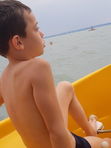 Általában délelőtt kimentünk a strandra és az aktuális program előtt hazamentünk. Rengeteget fürödtünk, tudom, valahogy az életkor előrehaladtával csökken a fürdési kedv, hát azt hiszem ez nálam pont fordítva van, lehet második gyerekkoromat élem 🙂 . Ugyanis állandóan a vízben lennék, pedig a tömeget nem szeretem, de akkor is, ezt a zsúfoltság dolgot általában úszással oldom meg. Na, persze nem állandóan és hát ott van Toma is, akivel labdázunk általában a vízben vagy mind a négyen vagy hármasban a fiúkkal vagy kettesben 🙂 . Az úszásban társam Máté, akivel beúszunk a bóján túlra, és az olyan jó, mert ott nem sokan vannak, szinte senki, csak a Balaton…