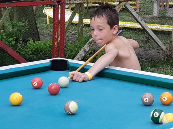 Aztán vízibicikliztünk is sokat, ezt Toma szereti a legjobban, tekerni is, úgyhogy az nekem a pihi idő, valakik mindig tekernek különféle felállásban, engem viszont – nagyon helyesen 🙂 – kihagynak 🙂 … Aztán ami fergeteges ott az alsóörsi strandon, az az élménypark és ezt elsősorban Toma szereti! Volt idő, amikor olyan 3-4 évesen a kis elektromos autókat vezette, aztán utána a trambulin park volt a sláger, majd tavaly már a léghoki is, idén pedig – a léghoki és a trambulinok mellett – a minigolf és a biliárd lett a fő szenzáció 🙂 ! Napijegyet váltottunk neki és amikor éppen nem fürödtünk, akkor az árnyas élményparkban játszott 🙂 … Az utolsó nap, délelőttől egészen estig voltunk a strandon, nagyon remek időnk is volt akkor és tudtuk, hogy nagy valószínűséggel erre az évre utoljára fürdünk a Balatonban. Úgyhogy még a szokásosnál is többször és hosszabb ideig voltunk a vízben és amikor csak lehetett léghokiztunk Tomával – azt én szeretem jobban – de talán még többet biliárdozott Mátéval és a Családfővel, meg minigolfozott és trambulinozott természetesen 🙂 …