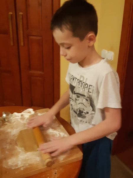 Sütöttünk többször is mézeskalácsot, répatortát, fotóm csak a mézes nyújtásáról van 🙂 …