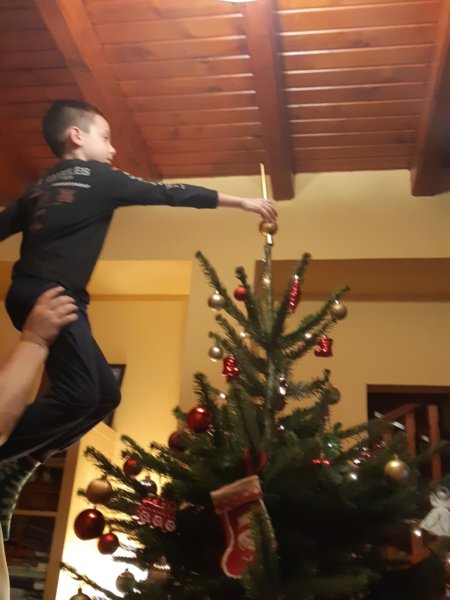 Szóval a karácsony 23-án estfelé indult, ugyanis most először, Toma is díszítette a fát, aminek nagyon, de nagyon örült 🙂 ! Eddig mindig az volt, hogy éjszaka díszítettünk, reggelre pedig a nappaliban állt a szép fa és körülötte ott heverésztek az ajándékok 🙂 . Azt Toma már előre bocsátotta, hogy a reggeli ajándékozásnak már végképp nem szeretne búcsút inteni, ebben mindenképpen támogattuk 🙂 ! A közös díszítés nagyon jól sikerült, én azt terveztem, hogy főzök almapuncsot vagy forró csokit, de mivel akkor még a bejgliket sütöttem, erre valahogy már nem maradt kapacitásom 🙂 , így az egyik gyerekpezsgőt bontottuk fel és avval koccintgattunk, díszítettünk. Illetve szinte Máté és Toma csinálta az egészet és tök jól elröhörésztek közben, meg mi is velük, úgyhogy ez a vidámság ilyenkor (és máskor is 🙂 ), remélem így lesz minden évvben 🙂 !