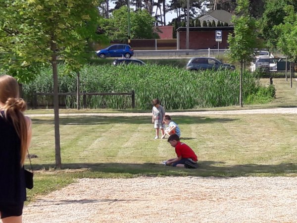 Onnan aztán Siófokra vonultunk, egy panzióba, ahol ebédeltünk, mindannyian nagyon éhesek voltunk már, szó szerint faltunk, de nagyon finom volt az ebéd. A gyerekek közben rohangászhattak, volt ott egy kis tó is, meg nagy zöld gyep, Toma talált egy labdát azzal focizott, aztán az egyik kisfiúval együtt, akit tanítgatott is, édesek voltak 🙂 :