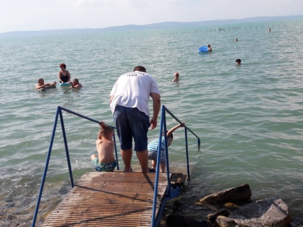 Beadták a derekukat, már csak azért is, mert nekik sem volt ez valami nagy áldozat 🙂 , így aztán lementünk az Aranypartra, mert az volt közel és végre Balaton illatot éreztünk és megcsodálhattuk újra a szép kékséget.