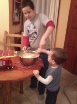 Bár nem szoktunk készülni a Valentin napra – ennek ellenére én kaptam egy csodaszép cserepes rózsát és egy hatalmas szív alakú lufit, aminek leginkább Toma örül és mindenhová viszi magával 🙂 – azért igyekszünk kihasználni az összes olyan alkalmat, amikor picit “ünnepelni” lehet :). Ezt a Valentinozást mi úgy éljük meg – főleg amióta gyerekek vannak – hogy a szerelem helyett, a családi szeretetet helyezzük előtérbe és ez a nap ennek szellemében telik Én már napokkal korábban arra gondoltam, hogy eme jeles pénteken, egy igazán finom és kedvenc sütit fogok sütni az itthoni fiú csapatnak. Választásuk a népszerű és gyakran készülő kókuszos-csokis bögrés sütire esett, amiben az volt az igazi jó fordulat, hogy nem egyedül, hanem a gyerekekkel együtt készítettük. Először beszállt Máté, aki az elejétől fogva mérte a hozzávalókat, törte a tojásokat, összevágta a csokit és keverte a süteményt. Majd ez utóbbi fázist Tomával is kipróbáltattam, aki innentől fogva lelkesen keverte-kavarta hol egyedül, hol Mátéval a tésztát :). Máté pedig nagyon ügyes volt mindenben, kis segítséggel de majdnem egyedül csinálta az egészet és ráadásul nagy örömmel :)! Ő régen is nagyon szívesen segített mindenféle süteménykészítésben, például évekig sütöttünk együtt a Mikulásnak mézeskalácsot, amit ő nyújtott, szaggatott, díszített, tehát nem kezdő a szakmában :), de mostanában sajnos nem szakítottunk időt ilyesmire. És ez milyen kár, ezentúl remélem másképp lesz… Máté egyébként annyira belelkesült, hogy másnapra kinézett egy túrós süti receptet, amit szeretné, ha együtt sütnénk meg :). Rég nem volt ilyen jó Bálint napunk, hiszen együtt voltunk, sütöttünk, jól éreztük magunkat, még zenét is hallgattunk közben és sokat nevettünk. Kell ennél több…?